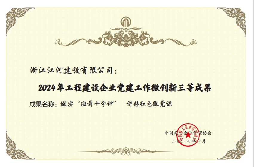 日前,由浙江江河建設有限公司黨總支部選送的黨建工作案例《做實“班前十分鐘 講好...