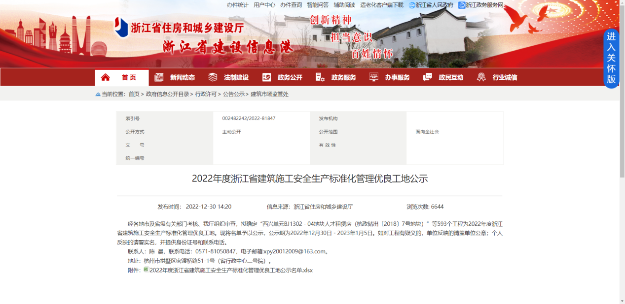 近日,經各地市及省級有關部門考核、浙江省住建廳組織審查,經評選認定,公司承建的“紹興市上...