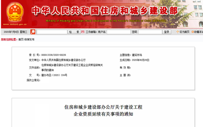 各省、自治區住房和城鄉建設廳,直轄市住房和城鄉建設(管)委,北京市規劃和自然資源委,新疆生產建設兵團住房和城鄉建設局,有關中央企業: 為貫徹落實黨中央國務院關于統籌推進新冠肺炎疫情防控和經濟社會發展工作決策部署,深化建筑業“放管服”改革,結合常態化疫情防控要求和建設工程企業資質改革工作安排,現將建設工程企業資質延續有關事項通知...