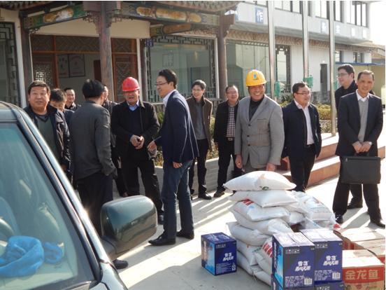 2015年2月9日下午,寧海縣縣委副書記、縣長楊勇,帶領縣委常委、寧波南部濱海新區管委會主任應亥宗、副縣長徐云、建設水利交通各部門及當地鄉鎮負責人來我公司承建的省重點工程毛嶼港綜合治理工程一期BT工程項目部進行2015年春節節前慰問。