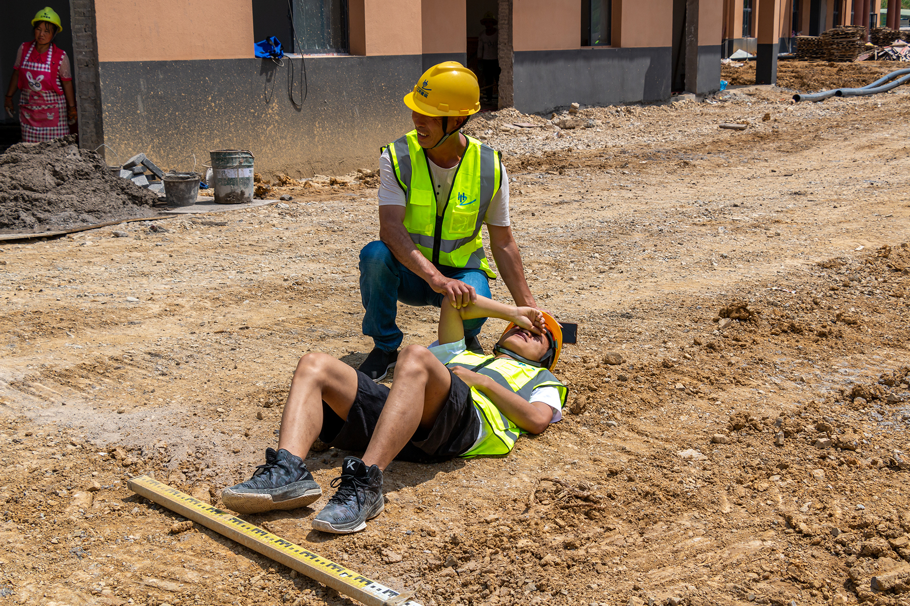 因夏季高溫持續(xù)時(shí)間長(zhǎng),施工現(xiàn)場(chǎng)人員多,一旦發(fā)生高溫中暑事故,將可能導(dǎo)致人員生命健康受到威脅和企業(yè)直接經(jīng)濟(jì)受損,為確保我司項(xiàng)目部萬(wàn)一發(fā)生高溫中暑事故后,能迅速有效地開(kāi)展搶救工作,最大限度地降低員工及相關(guān)人員生命安全風(fēng)險(xiǎn),06月08日,浙江江河建設(shè)有限公司麻江縣城鎮(zhèn)污水排水工程建設(shè)ppp項(xiàng)目部開(kāi)展高溫中暑應(yīng)急聯(lián)合演練。