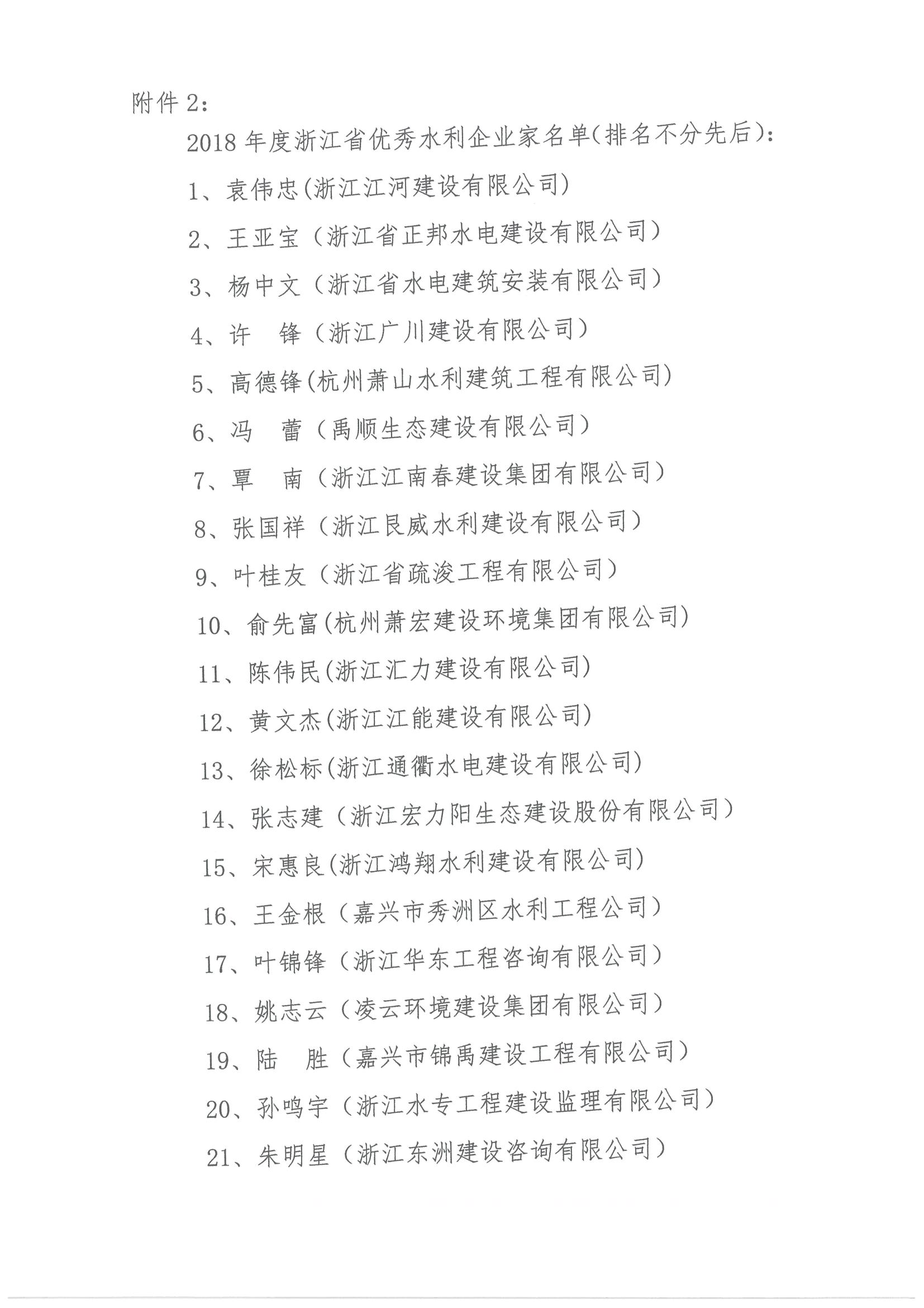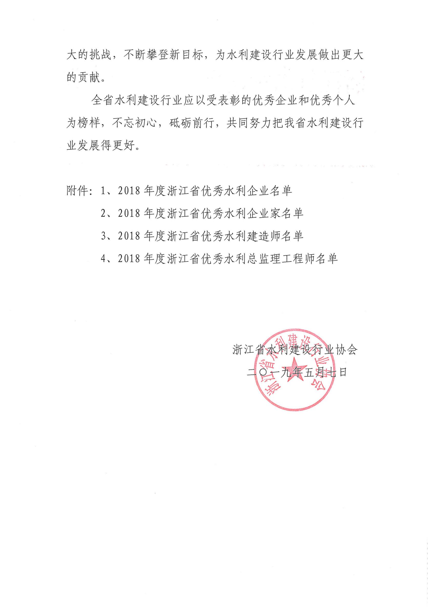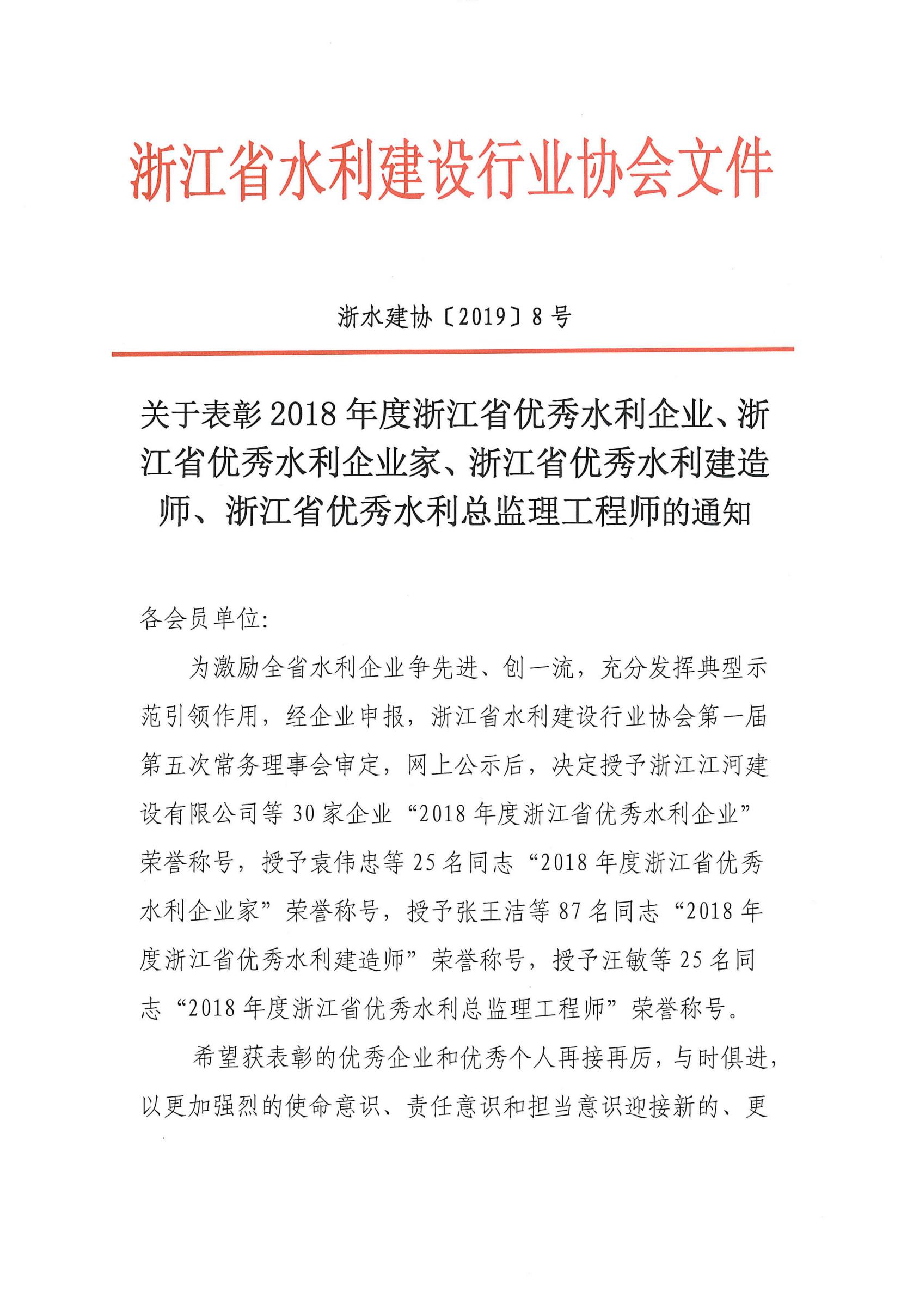 關于表彰2018年度浙江省優秀水利企業、浙江省優秀水利企業家的通知