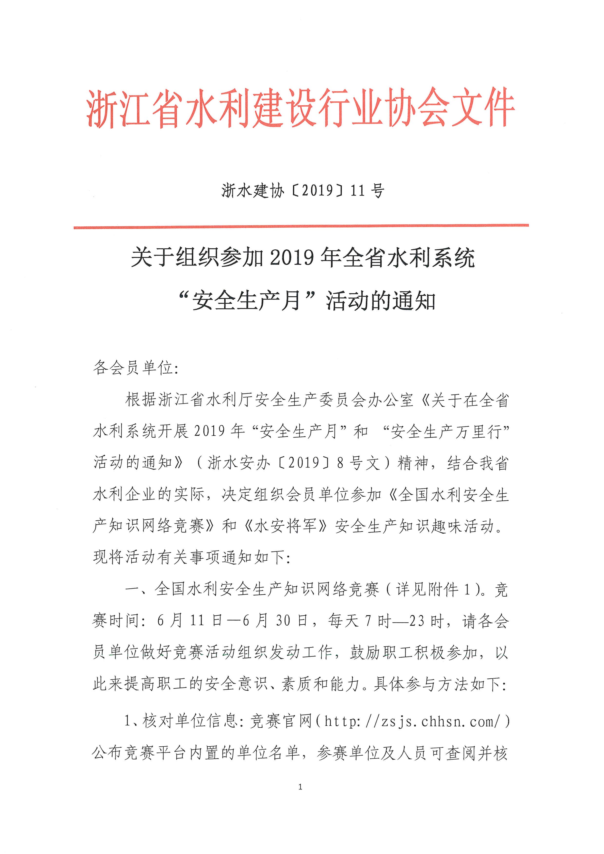 關于組織參加2019年全省水利系統“安全生產月”活動的通知