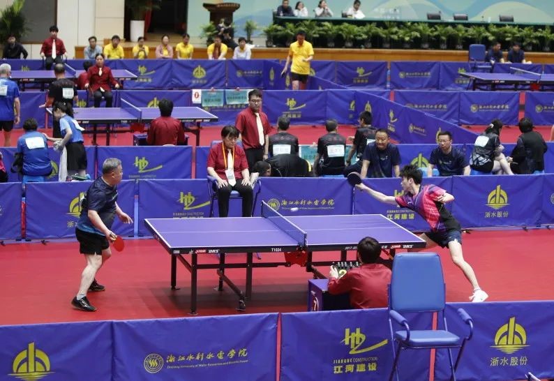 開幕式結束后,男子團體激烈開賽。賽場上,參賽選手個個精神飽滿、斗志昂揚,變幻莫測的發球、聲東擊西的戰術、疾如閃電的快攻,場面精彩紛呈,令人目不暇接,觀眾們歡呼聲持續不斷。本次比賽為期三天,比賽項目分男子團體賽和女子團體賽。運動員們將全力發揮競技水平,在賽場上進行精彩對決,展現水利健兒積極向上、斗志昂揚的精神面貌,以實際行動助力體育強國、健康中國建設,傳承國球精神,喜迎杭州亞運。